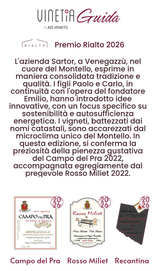 - il Premio "Ducato", che indica vini con un ottimo rapporto Qualità/Prezzo, ricevuto sia dal Campo del Pra 2022 che dal Rosso Miliet 2022;
